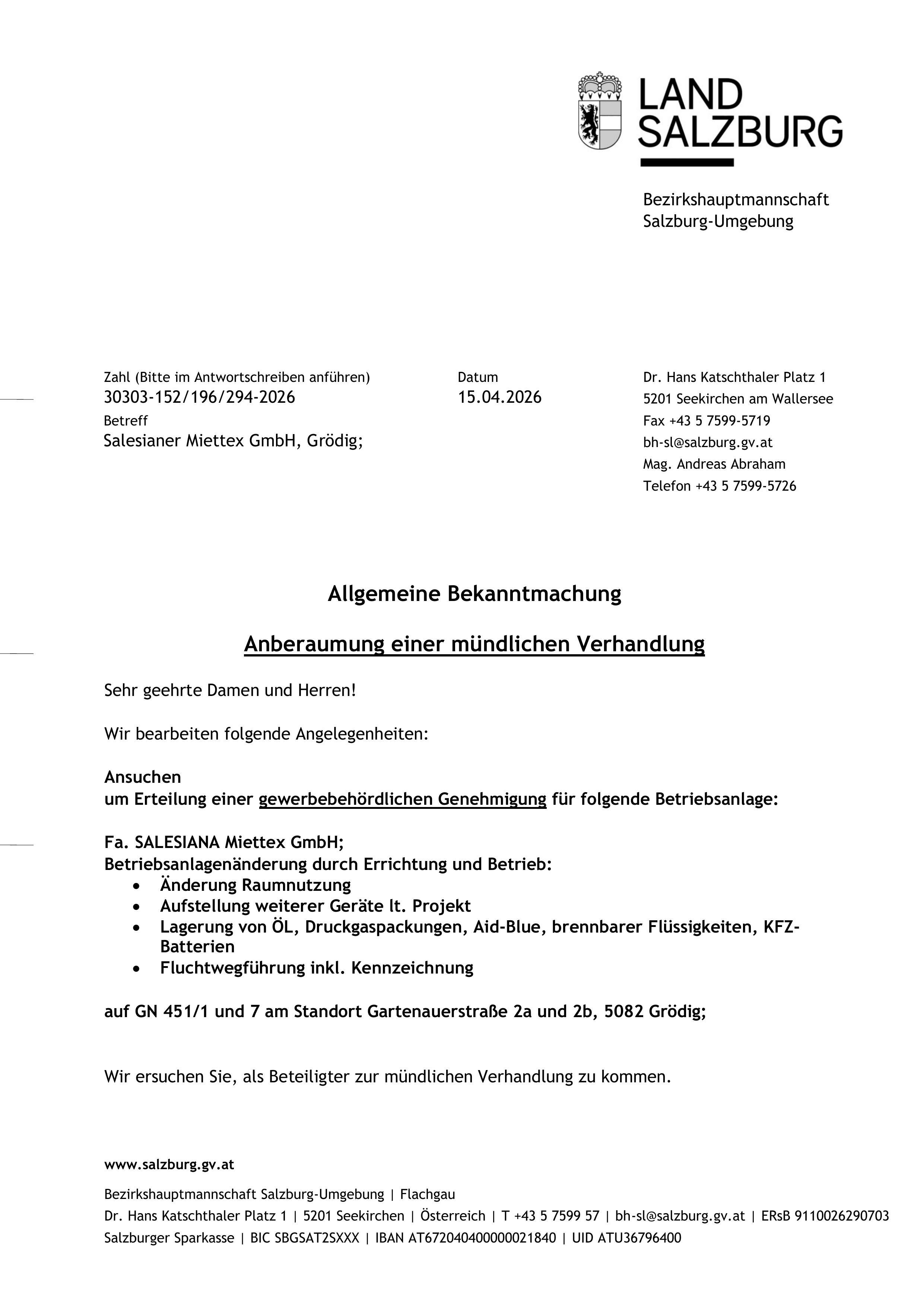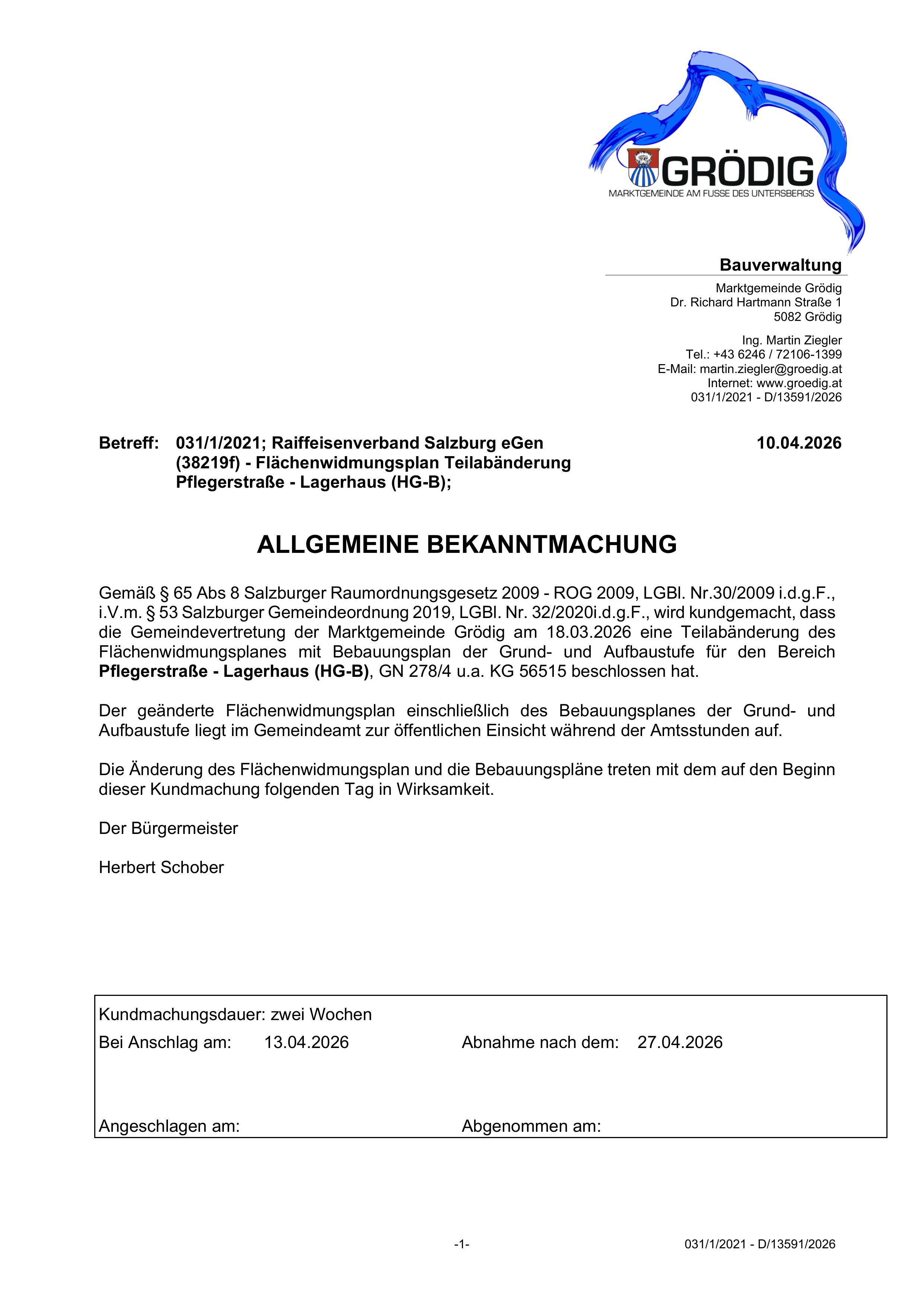 Raiffeisenverband Salzburg eGen Flächenwidmungsplan Teilabänderung Pflegerstraße - Lagerhaus